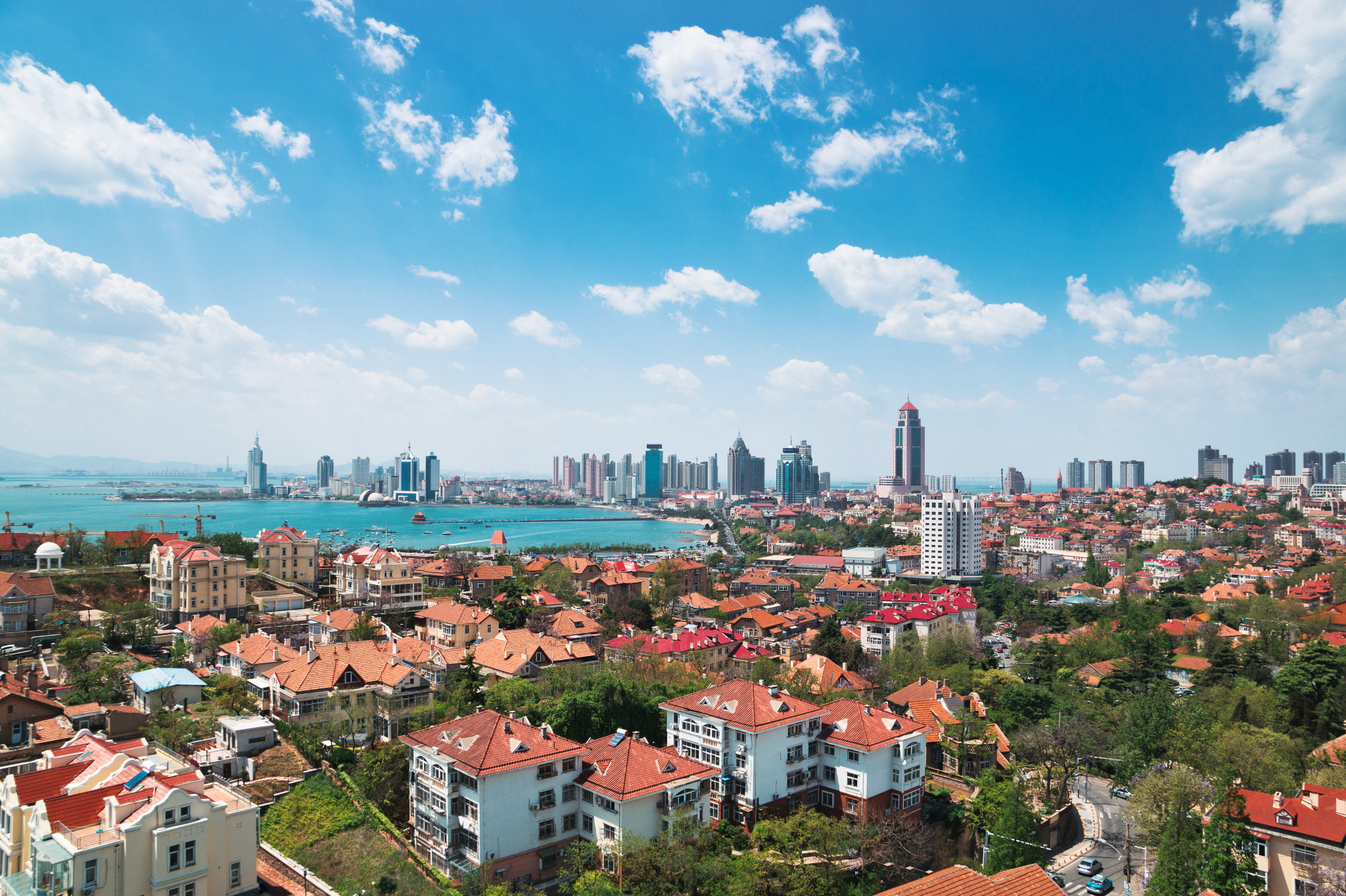 Qingdao, located in the southeast part of Shandong Province, is a beautiful seaside city with clear air and enchanting sea view. This city, bordered by the Yellow Sea on two sides, has the largest bathing beach in Asia and produces the mellow Tsingtao Beer.